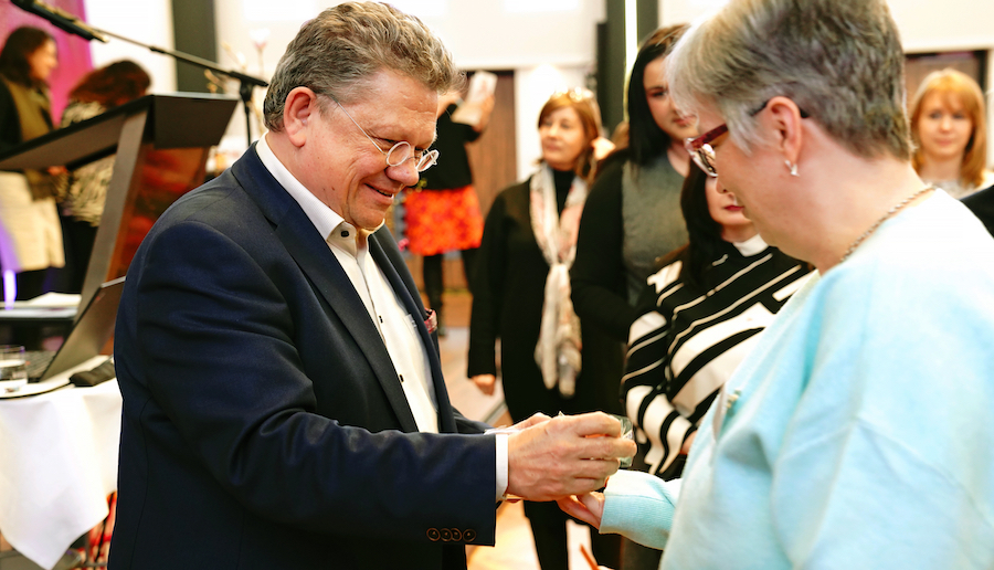 Zertifikatsübergabe und gemeinsames Foto mit allen Mentees